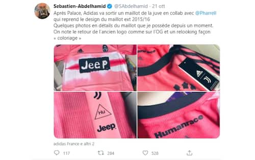 A svelare le divise disegnate da Pharrell Williams è stato anche il giornalista Sebastien-Abdelhamid che ha pubblicato, sul suo account personale di Twitter, alcune immagini in dettaglio della quarta maglia della Juve