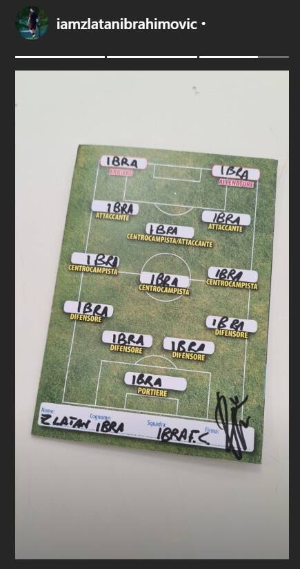 socialPost ironico di Ibrahimovic sui social. L'attaccante del Milan ha disegnato la sua formazione ideale, composta da 11 Zlatan schierati con un 4-3-3. Non solo: anche nelle caselle relative all'allenatore e all'arbitro lo svedese ha scritto "Ibra". Il nome della squadra è "Ibra F.C."