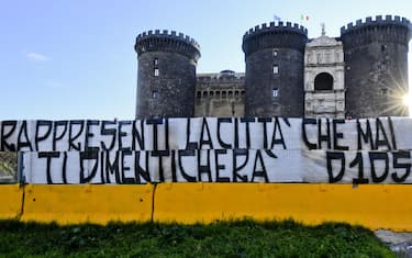 "Rappresenti la città che mai ti dimenticherà", recita lo striscione esposto all'esterno del Maschio Angioino, uno dei simboli di Napoli