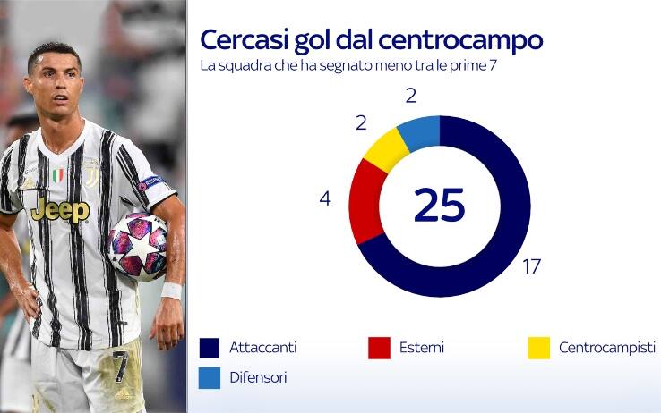 Ma c’è un altro aspetto che Pirlo vuole migliorare: tra le prime sette in classifica la Juve è la squadra che segna meno, 25 gol. La media è buona, quasi 2 reti a partita, grazie alla costanza di Ronaldo a quota 12 gol. Ciò che manca è invece il contributo dei centrocampisti (appena 2 gol con Mckennie e Rabiot) e in parte degli esterni. Chiesa si è sbloccato con l’Atalanta, ma da lui Pirlo si aspetta maggior concretezza. Mentre Kulusevski ha segnato 3 volte, però è calato di forma. Sono rimasti a secco Bernardeschi, Arthur, Bentancur e Ramsey, oltre al jolly Cuadrado. Se a inizio anno anche dal centrocampo cominceranno ad arrivare gol allora la Juve potrà sentire meno freddo in classifica e puntare al primo posto con maggiore fiducia.