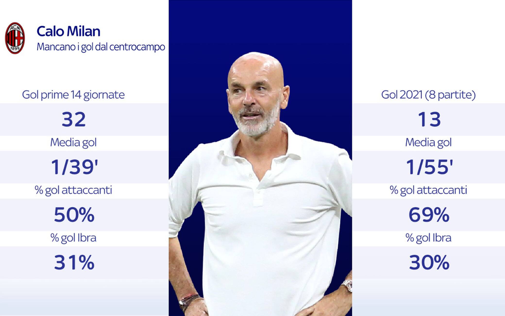 L'ANALISIObbligatorio ripartire per la squadra di Pioli, battuta dallo Spezia e scavalcata in vetta dall'Inter in attesa del derby. Una situazione delicata per i rossoneri: lo dimostra il calo di punti e gol rispetto allo straordinario 2020, ma non solo. Escluso Ibrahimovic mancano le reti dei centrocampisti, perso anche il fattore rimonta. Matteo Marani: "Il Milan sta pagando la condizione"