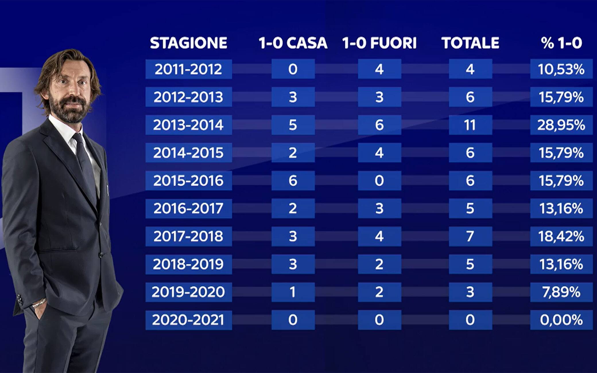 Significativa la statistica della Juventus attuale a confronto con quella dei 9 scudetti: il termine di paragone è la vittoria per 1-0, successo col minimo scarto (senza concedere reti) dal 2012 al 2020 in campionato. Nell’intervallo ce ne sono quasi 7 di media stagione con il picco nell’annata 2013/14, quando l’ultima Juve di Conte ne accumulò ben 11 (quasi il 29% dei risultati totali in 38 gare). Ebbene, quest’anno con Pirlo non è mai accaduto. Questione di solidità perduta? "C’era la sensazione del controllo della partita - spiega Sandro Piccinini -, mentre questa squadra non dà l’impressione di poter controllare la gara fino in fondo. Al netto delle assenze, vanno riconosciuti anche i meriti del Verona. La Juventus ha perso punti con Crotone, Verona e Benevento all’andata, tre pareggi con Arthur sempre titolare". Proprio sul centrocampo si sposta l’attenzione di Piccinini: "Arthur era un giocatore diverso: ora è migliorato, ma va ricordato il saldo dei centrocampisti (il brasiliano con Bentancur, Rabiot e Ramsey) che hanno segnato 4 gol. Il centrocampo rende poco dal punto di vista dei numeri. Cristiano Ronaldo non può fare tutto da solo". Secondo Beppe Bergomi lo sguardo deve essere complessivo: "Occorre dare un giudizio diverso. Se vai a vedere i risultati, la Juve ha vinto un trofeo ed è in finale di Coppa Italia. E può passare il turno in Champions. In campionato il divario invece è aumentato".