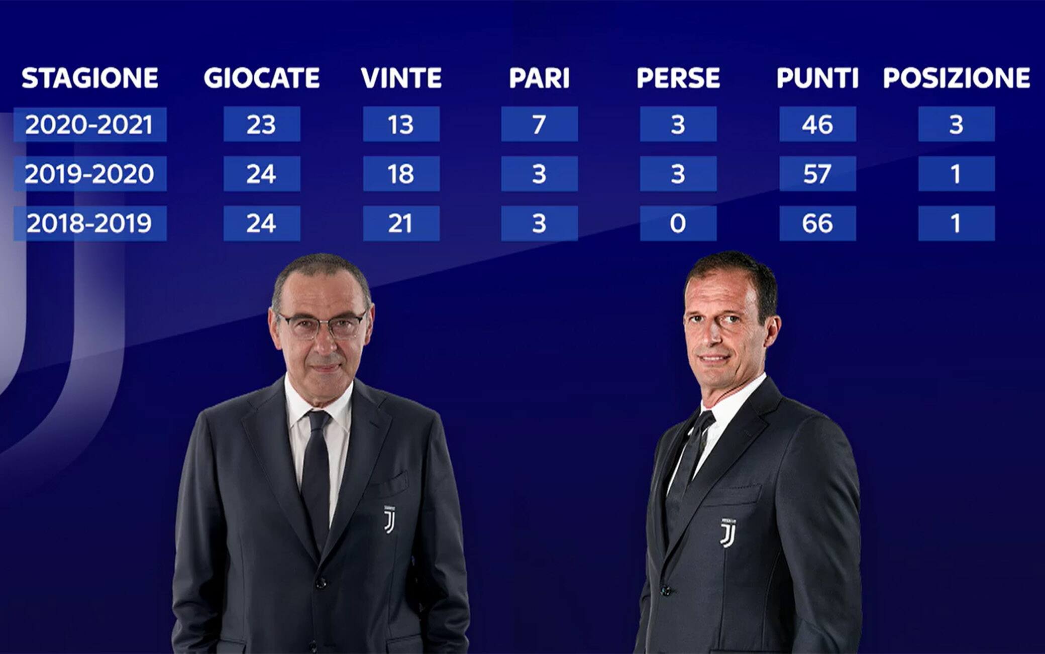 In ritardo di 10 punti dalla vetta, pur con una partita in meno. È la situazione della Juventus di Andrea Pirlo, terza in classifica con 46 punti raccolti in 23 turni. Il pareggio imposto dal Verona ha causato un ulteriore allungo dell’Inter capolista, divario che potrà essere ridotto in caso di successo nel recupero contro il Napoli. Un bilancio ancora parziale per i bianconeri che, tuttavia, pagano una differenza importante di punti nel confronto con le altre Juve degli ultimi tre anni. Parliamo delle squadre di Massimiliano Allegri e Maurizio Sarri che, a questo punto della stagione (con una gara disputata in più), avevano rispettivamente 20 e 11 punti in più dei bianconeri di Pirlo. Entrambi i predecessori in panchina occupavano il 1° posto dopo 24 giornate di Serie A, interessante anche il dato relativo alle sconfitte: nessuna per la Juve di Max, tre come Pirlo per Sarri che tuttavia aveva vinto 5 incontri in più. Una differenza importante ribadita dai numeri a Sky Calcio Club.