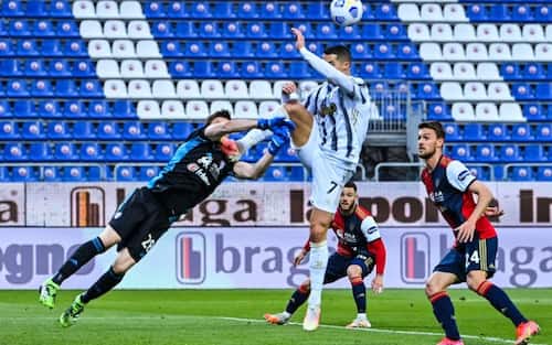 Ronaldo non tira indietro il piede e dopo l'impatto rovina su Cragno con la gamba, colpendolo duramente