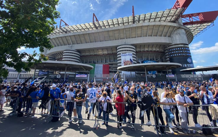 Il conto alla rovescia per l’inizio della festa è già iniziato tra i tifosi nerazzurri. A poche ore dall’inizio della sfida di campionato tra Inter e Udinese, fischio d’inizio alle ore 15, sono già diversi i sostenitori della squadra allenata da Antonio Conte che sono presenti all’esterno dello stadio milanese, per l’occasione aperto a 1000 ospiti (dipendenti dell'Inter, sponsor e famiglie dei calciatori). Al termine del match infatti verrà consegnata la coppa dello scudetto a Lukaku e compagni, che celebreranno così il tricolore conquistato nelle scorse settimane.