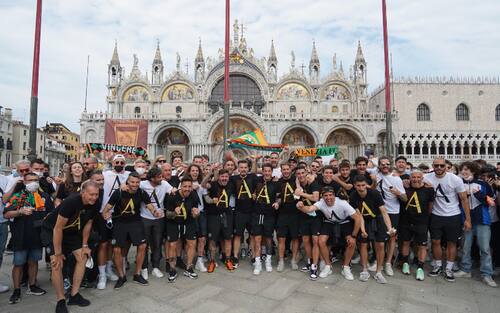Giro sul pullman? Non a Venezia, dove la squadra ha festeggiato il ritorno in Serie A dopo 19 anni con una meravigliosa sfilata lungo il Canal Grande. Da piazzale Roma a San Marco, le imbarcazioni dei privati hanno accompagnato il passaggio dei ragazzi di Paolo Zanetti sotto il ponte di Rialto tra cori e canzoni. Ecco le foto più belle