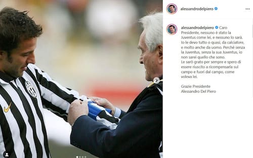 ALESSANDRO DEL PIERO: "Caro Presidente, nessuno è stato la Juventus come lei, e nessuno lo sarà. Io le devo tutto o quasi, da calciatore, e molto anche da uomo. Perché senza la Juventus, senza la sua Juventus, io non sarei quello che sono. Le sarò grato per sempre e spero di essere riuscito a ricompensarla sul campo e fuori dal campo, come voleva lei. Grazie Presidente"