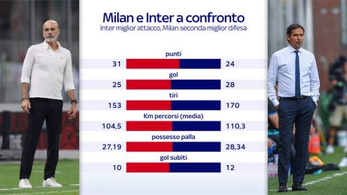 Oggi la situazione si è capovolta. Il Milan (in testa) ha addirittura 7 punti di vantaggio sull’Inter. E una vittoria dei rossoneri costituirebbe un allungo quasi decisivo