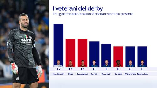 Per Ibra sarà il 12° derby, così come per Romagnoli. Ma il recordman di presenze rimane Handanovic, che giocherà il suo 18° derby di Milano in carriera