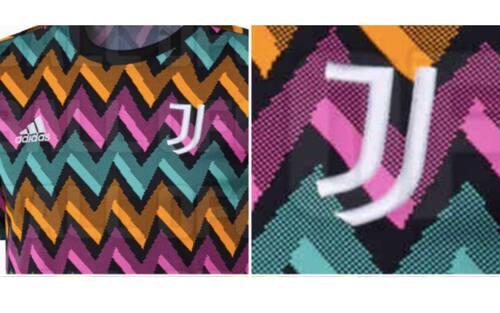 Il portale specializzato "Footy Headlines" ha pubblicato le immagini di quella che potrebbe essere la nuova maglia indossata nel riscaldamento dalla Juve dal 2022. Un design molto particolare con linee orizzontali a zig-zag tra il turchese, l'arancione e il rosa