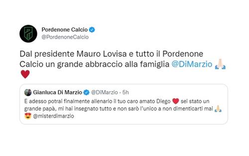 PORDENONE. "Dal presidente Mauro Lovisa e tutto il Pordenone Calcio un grande abbraccio alla famiglia Di Marzio".