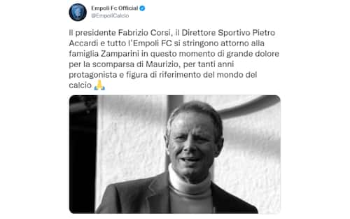Il post dell'Empoli: "Il presidente Fabrizio Corsi, il Direttore Sportivo Pietro Accardi e tutto l’Empoli FC si stringono attorno alla famiglia Zamparini in questo momento di grande dolore per la scomparsa di Maurizio, per tanti anni protagonista e figura di riferimento del mondo del calcio"