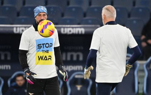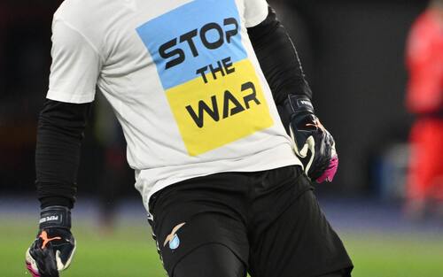 Maglia speciale per la Lazio nel riscaldamento pre match contro il Napoli: la scritta "Stop the war" appare sopra la bandiera dell'Ucraina. La stessa iniziativa da parte dello Spezia prima della propria sfida con la Roma