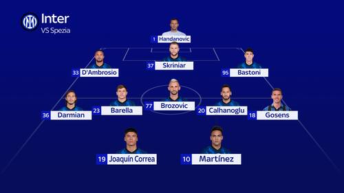 Contro lo Spezia, Inzaghi pensa a qualche cambiamento dopo la vittoria contro il Verona. Qualche titolare diffidato potrebbe essere risparmiato in vista della sfida contro la Roma e altri potrebbero riposare in ottica semifinale di Coppa Italia. Pronto a scendere in campo per la prima volta da titolare l'ex Atalanta, mentre in attacco si va verso la coppia argentina, in panchina de Vrij. Thiago Motta si gioca la carta Manaj
