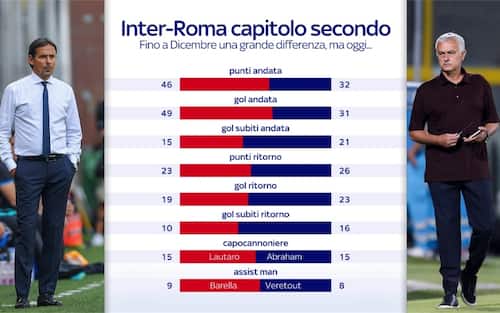 Inter e Roma torrnano ad affrontarsi in campionato dopo lo 0-3 che i nerazzurri sfoderarono all'Olimpico lo scorso 4 dicembre. Rispetto al match di andata Mourinho ha trovato un equilibrio che ha portato i giallorossi a una striscia di 12 risultati utili consecutivi in Serie A, raggiungendo anche la semifinale di Conference League. Inzaghi, d'altro canto, oltre alla volata scudetto è ancora in corsa per la Coppa Italia (competizione da cui ha eliminato proprio la Roma ai quarti). Ecco le probabili scelte dei due allenatori per il match di San Siro (sabato ore 18)