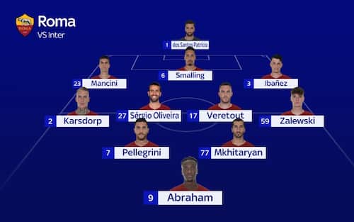 PROBABILE FORMAZIONE ROMA (3-4-2-1): Rui Patricio; Mancini, Smalling, Ibanez; Karsdorp, Sergio Oliveira, Veretout, Zalewski; Pellegrini, Mkhitaryan; Abraham. All. Mourinho