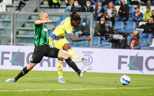 Vittoria in trasferta per i bianconeri che soffrono nel primo tempo e vanno in svantaggio dopo il gol di Raspadori. Pareggia Dybala ma è Kean dalla panchina che risolve il match allo scadere. Sottotono Bernardeschi, bene Bonucci. Nei neroverdi buona la prova di Frattesi