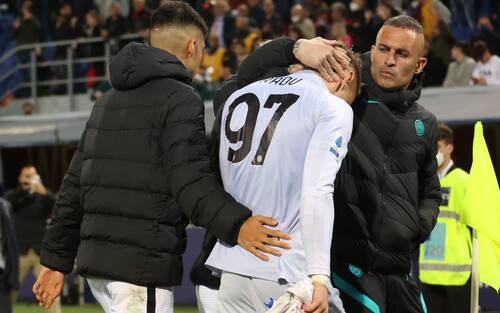 A fine partite il secondo portiere dell'Inter scoppia in lacrime e viene subito consolato dai suoi compagni, che si mettono anche tra lui e le telecamere per "proteggerlo"
