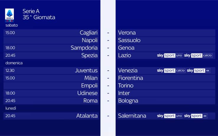 Serie A, il programma della 35^ giornata