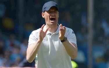 Tra i più acclamati c'era lo stesso Blessin, che ha poi iniziato un discorso: "Parlo poco l'italiano, ci lavoro ogni giorno - accompagnato da cori di incoraggiamento del pubblico - Abbiamo la grande responsabilità di rimanere qui il prossimo anno e di festeggiare la promozione in Serie A. Noi che siamo davanti e quelli che sono qui dietro a me (in riferimento al suo staff, ndr), faremo il possibile", baciando anche lo stemma del club sulla polo indossata.