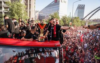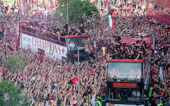 Dopo il grandissimo entusiasmo nelle ore immediatamente successive alla conquista del tricolore, per i rossoneri arriva un altro bagno di folla con la parata dei pullman scoperti che parte da Casa Milan: migliaia i tifosi in festa che scortano i protagonisti del 19mo titolo milanista