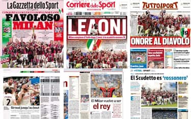 Il 19° scudetto del Milan dopo 11 anni di attesa celebrato sui principali quotidiani italiani e stranieri. Ecco le prime pagine di oggi (lunedì 23 maggio), iniziando dai tre quotidiani sportivi italiani