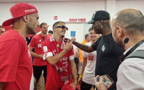 Anche Mario Balotelli presente all'U-Power Stadium per congratularsi con i suoi ex compagni del Monza per la storica promozione in Serie A