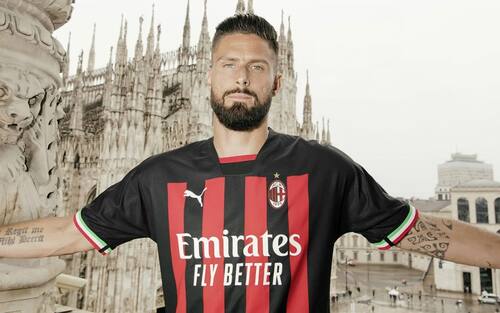 Il club rossonero ha ufficializzato l’home kit prodotto dal brand Puma per la prossima stagione. Tra i modelli ci sono Giroud, Tonali e Rafael Leão oltre al cantante Rkomi (grande tifoso rossonero e prossimo giudice di X Factor 2022). Una maglia che, oltre alle storiche strisce, vede una prevalenza di nero e il tricolore sia al centro, tra lo sponsor e lo scudetto, sia sui bordi delle maniche