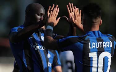 Arriva immediatamente l'abbraccio di Lukaku: la coppia di attaccanti nerazzurra si è definitivamente ritrovata