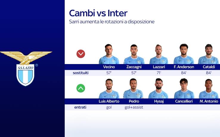 Ma il vero cambio è nei...cambi. Ora Sarri ha una panchina profonda e la possibilità di scegliere. Addirittura può permettersi di giocarsi le carte di qualità Pedro e Luis Alberto a gara in corso. E la differenza è stata evidente. Un gol a testa e l'assist dell'attaccante per lo straordinario gol del centrocampista. Uomo copertina del momento. L'estate, anzi il mercato, sta finendo. E come ogni anno porterà via anche le voci sul futuro di Luis Alberto. La voglia, mai nascosta, di tornare al Siviglia non si concretizzerà. Dopo un precampionato elettrico è tornato motivato e concentrato. E Sarri ha apprezzato. Per caratteristiche non è il prototipo del suo giocatore ideale e non ha il posto fisso garantito in campo - ancora mai titolare quest'anno - ma se entra e decide come contro l'Inter può diventare il vero jolly nella corsa Champions dei biancocelesti.