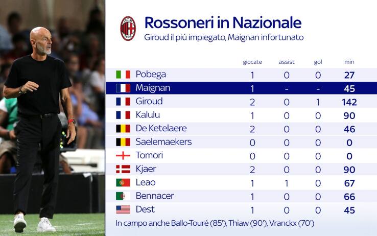 milanIn attesa del rientro di tutti i nazionali, a Milanello lavorano gli "acciaccati": Calabria ci sarà per l'Empoli, verso il recupero anche Sandro Tonali. Valutazioni nelle prossime ore per Origi e Rebic: il croato sembra aver superato il problema alla schiena. Out con l'Empoli invece Theo Hernandez e Maignan. Nel weekend di riposo concesso alla squadra, Pioli ha portato il suo staff (e le famiglie) sul lago di Como: un modo per compattarsi sempre più