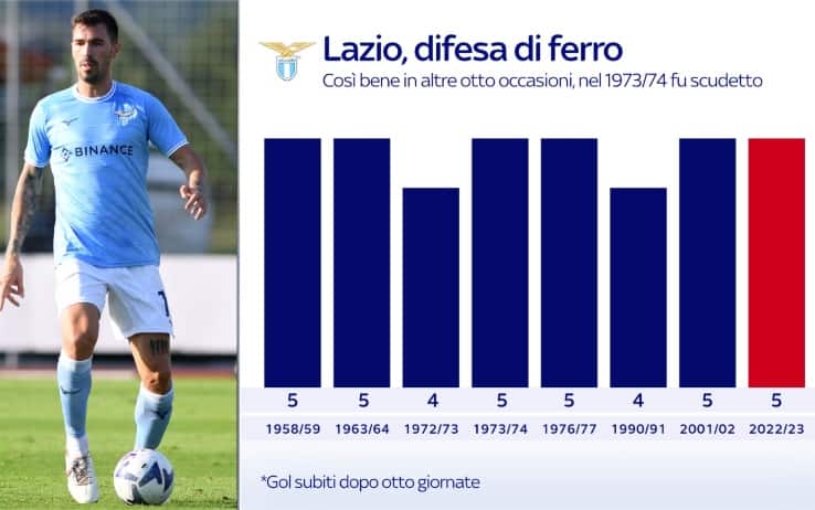 Dieci gol fatti e zero subiti, tre indizi che fanno una prova per la Lazio di Sarri. 2-0 al Verona, 4-0 alla Cremonese e 4-0 allo Spezia: ecco la continuità tanto agognata e forse finalmente trovata, la stessa che nella passata stagione fu probabilmente il vero limite della banda biancoceleste. Certo ora bisognerà attendere sfide più probanti (col Napoli, ad esempio, è arrivata una sconfitta interna) ma qualcosa a Formello sembra essere decisamente cambiato. Lo dicono soprattutto i numeri, che tra un po’ sciorineremo come un mantra di devozione al Sarrismo ritrovato, ma anche tanti piccoli particolari che la squadra biancoceleste sta riuscendo a mettere in campo in questa seconda stagione del nuovo ciclo post Simone Inzaghi. L’emblema è il nuovo atteggiamento difensivo, la disponibilità a sacrificarsi da parte di tutti e la capacità di leggere molto meglio, secondo quella che è la visione del proprio allenatore, le fasi di gioco. Il tutto sotto la guida di un nuovo leader, quell’Alessio Romagnoli che, da gran tifoso qual è, ha voluto fortemente la Lazio e che contro lo Spezia ha trovato il primo gol con la sua nuova maglia, tra l’altro proprio sotto la sua Curva Nord. Anche grazie alla sua guida la Lazio è riuscita a mettere in fila tre partite senza prendere gol e ad incassare appena 5 gol nelle prime 8 giornate, migliorando il proprio dato al passivo di ben 8 gol rispetto alla passata stagione. Numeri che non si vedevano sulla sponda biancoceleste del Tevere dal lontanissimo 2001/02 (anche allora 5 gol subiti ma appena 3 segnati) e che solo in due occasioni nella storia del club sono stati migliori (72/73 e 90/91, quando la Lazio subì solo 4 gol nelle prime 8 giornate). Attualizzati, significano seconda miglior difesa del campionato insieme alla Juve e dietro solo all’incredibile Atalanta.