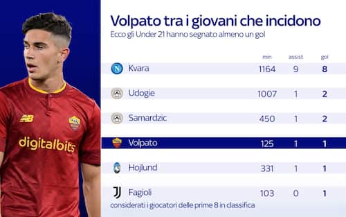 - Considerati i giocatori delle prime otto della classe, solo Kvara, Udogie e Samardzic hanno contribuito a più reti di lui.