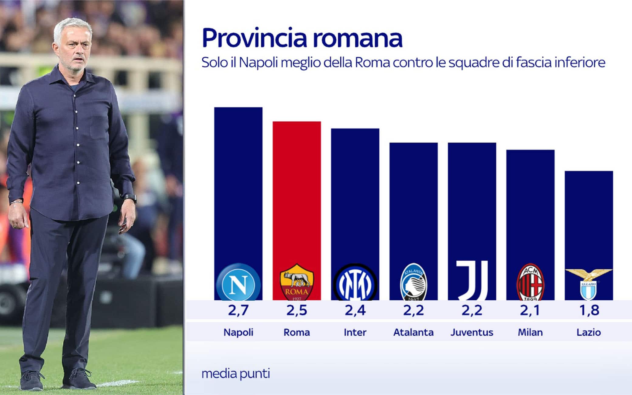 Nessuno scontro diretto in vista. Saranno Lecce, Verona e Cremonese le prossime tre partite in campionato e il rendimento dimostra come solo il Napoli abbia realizzato più punti della Roma affrontando le squadre fuori dalle prime 7. Una media punti di 2,5 a partita, rispetto ai 2,7 del Napoli che sta portando avanti un campionato a parte. Le altre sono tutte dietro. In una corsa Champions che rimane l'obiettivo principale di Mourinho, anche in vista di eventuali investimenti estivi sul mercato. Le certezze non mancano.