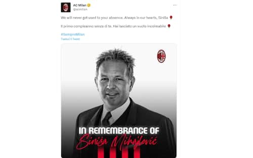 - "Il primo compleanno senza di te, hai lasciato un vuoto incolmabile": con queste parole il Milan ha ricordato Sinisa, che ha guidato i rossoneri nella stagione 2015-2016