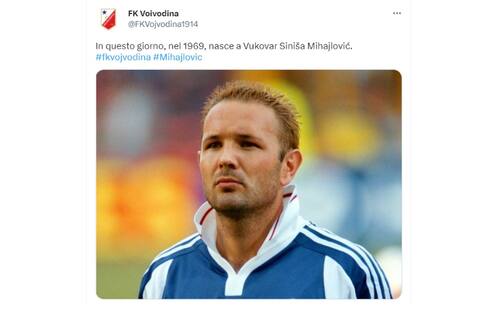 - Un messaggio di buon compleanno è arrivato per Sinisa anche dal Vojvodina, il club di Novi Sad dove Mihajlovic ha iniziato la sua carriera da calciatore nel 1988 prima di passare alla Stella Rossa
