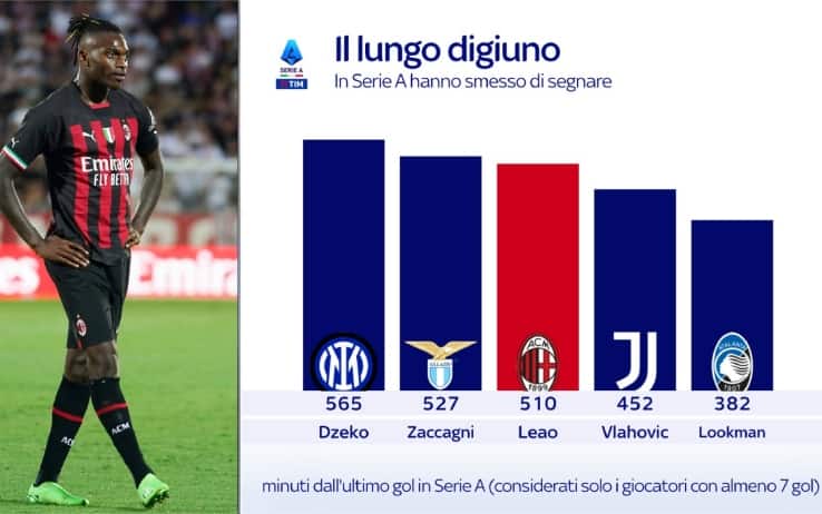 Degli appena 15 gol in 15 partite dall'inizio del nuovo anno, il francese ne ha segnati 3, mentre Leao, fermo a 2, non va in rete esattamente da 2 mesi. L'ultima gioia del portoghese in casa del Lecce il 14 gennaio scorso, 10 partite in totale senza gol, troppe per un attaccante.