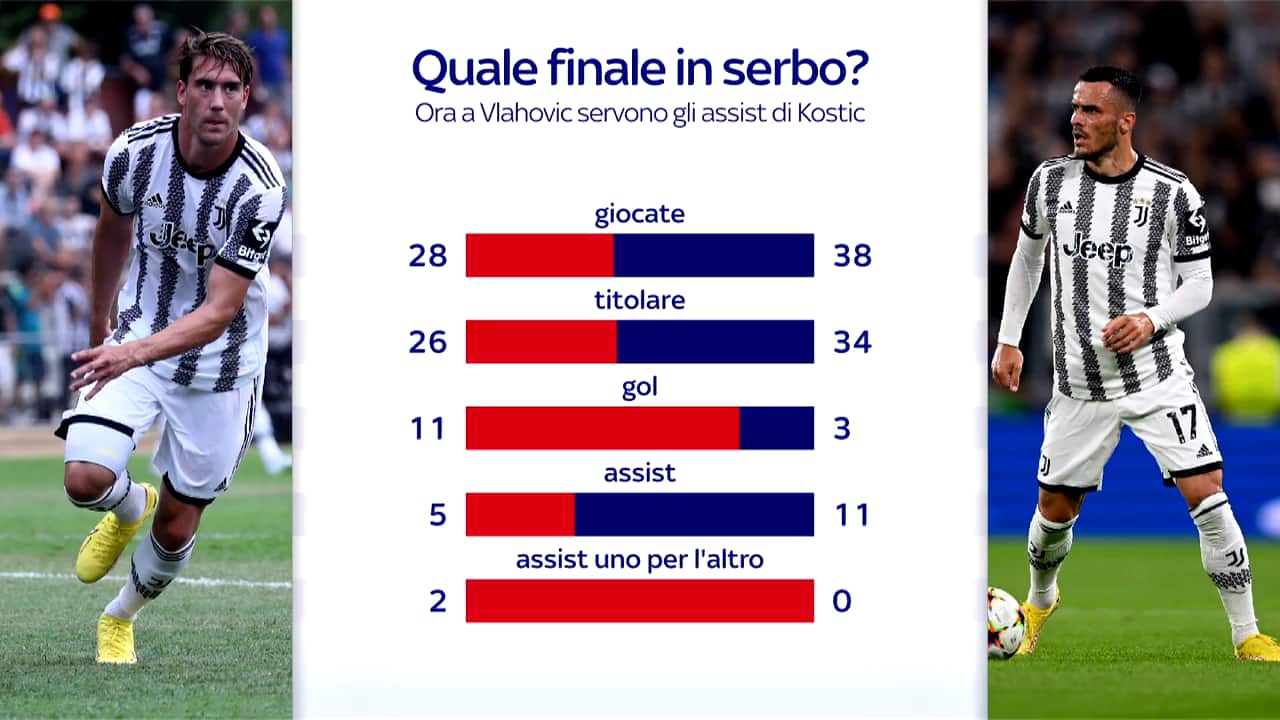 JUVENTUSNon c'è l'Ital-Juve in questa pausa delle nazionali, ma una Serbia-Juve: l'esterno e il centravanti si ritroveranno fianco a fianco anche con la maglia del loro Paese, con l'obiettivo di affiniare l'intesa. Finora Kostic ha realizzato undici assist, ma nessuno per il connazionale che, invece, ne ha fatti due per l'ex Eintracht. L'obiettivo è ritrovarsi anche in campionato