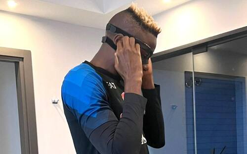 - Osimhen gioca con la maschera da quando subì un bruttissimo infortunio a novembre 2021, con fratture multiple delle ossa vicino l'occhio sinistro in virtù di un colpo di gioco fortuito con il difensore dell'Inter Milan Skriniar. Tornato in campo con la maschera, non l'ha più tolta per scaramanzia e sicurezza