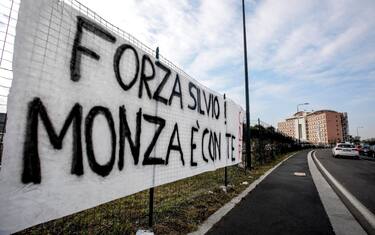 Sui cancelli all'esterno dell'ospedale dove si trova ricoverato il proprietario del Monza, è comparso uno striscione di sostegno per Berlusconi firmato dagli ultras della curva.