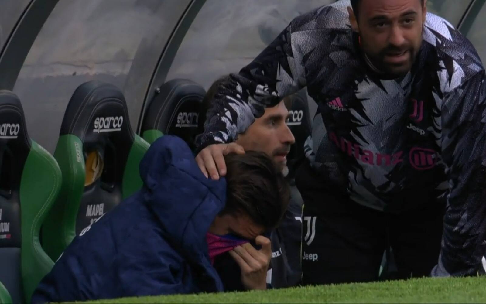 A proposito della disattenzione su corner e gol, evidente è stato l'errore di Nicolò Fagioli al minuto 64: è lui a sbagliare il rinvio in area, disimpegno errato che ha favorito la girata vincente di Defrel. Al vantaggio del Sassuolo erano immediatamente seguiti i primi cambi di Allegri: dentro Chiesa e Miretti, fuori Kostic e proprio Fagioli. E appena il 22enne centrocampista bianconero si è accomodato in panchina è scoppiato in lacrime: un pianto a dirotto quello di Nicolò, inconsolabile nonostante l'intervento di Pinsoglio e degli altri compagni. Tutta la sua delusione nascosta dal viso dentro il giaccone.