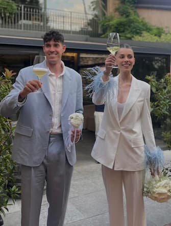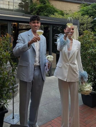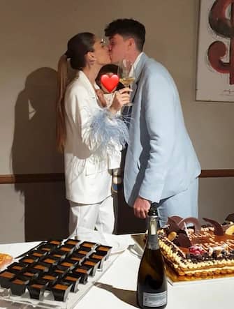 - Il brindisi della coppia, che si è sposata il 31 maggio, ma ha pubblicato le foto sui social il giorno dopo.