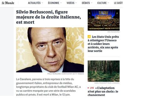 LE MONDE (Francia): "SILVIO BERLUSCONI, GRANDE ESPONENTE DELLA DESTRA ITALIANA, E' MORTO"