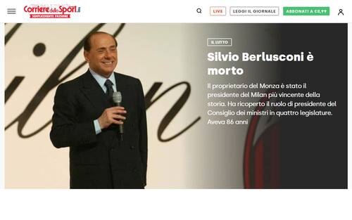 La notizia della morte di Silvio Berlusconi apre i quotidiani online di tutto il mondo. Ecco come è stata raccontata dalla stampa, sportiva e non, in Italia e all'estero