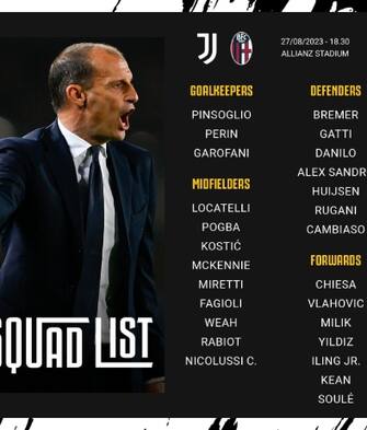 I CONVOCATI DI ALLEGRI PER JUVE-BOLOGNA