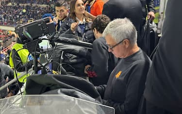 Inter-Roma, Mourinho ha seguito la gara dalla tribuna stampa. FOTO