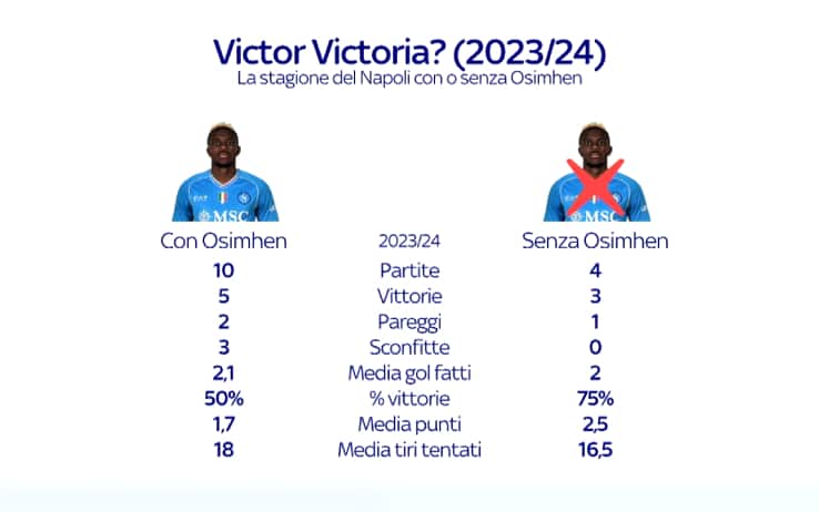 Con o senza Osimhen è sempre lo stesso Napoli, anzi a volte anche meglio. Allora le spiegazioni sono due: o Raspadori vale Victor, oppure, e questa probabilmente è l’analisi più logica, in certe partite l’italiano garantisce alla squadra più equilibrio rispetto al nigeriano. In buona sostanza, il Napoli ha un grande parco attaccanti, senza dimenticare Simeone, alternative importanti che hanno garantito, a Spalletti prima, e ora a Garcia, di sopperire all’assenza di Victor. Che resta senza dubbio, il giocatore di maggiore spessore.