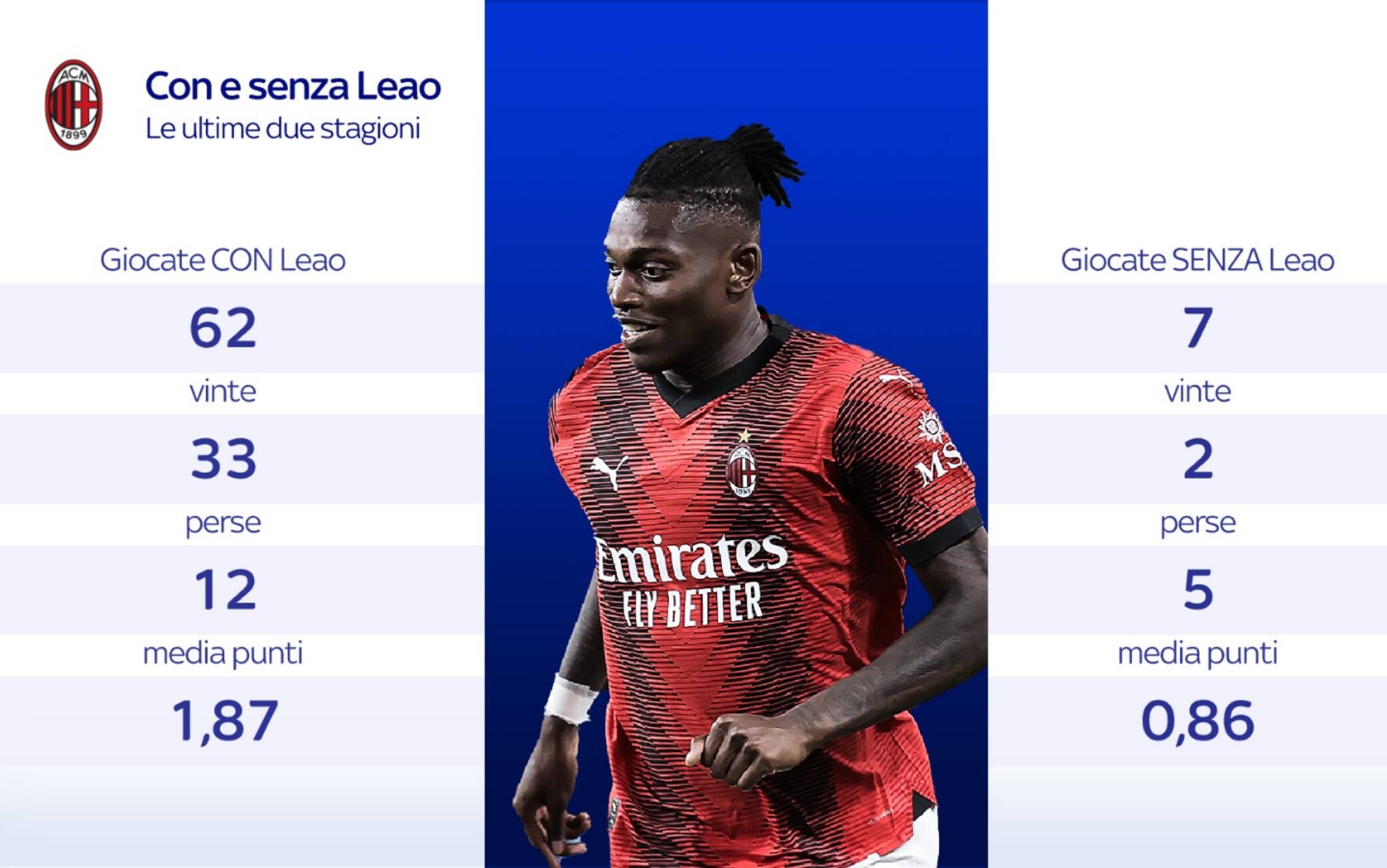Dall'inizio della scorsa stagione a oggi, considerando Champions e campionato, la media punti della squadra di Pioli è crollata in assenza del portoghese. Nelle 7 partite in cui il Milan è stato orfano di Rafa, sono arrivate 5 sconfitte e appena 2 vittorie, peraltro nelle ultime due in Serie A, intervallate dal crollo contro il Borussia Dortmund. Da vedere e capire se Leao riuscirà a unirsi alla squadra già nelle prossime ore per essere subito a disposizione oppure se per precauzione sarà meglio aspettare qualche giorno in più. Personalizzato anche per Kjaer: il danese potrebbe saltare Bergamo (e sarebbe l'ottava partita di fila).