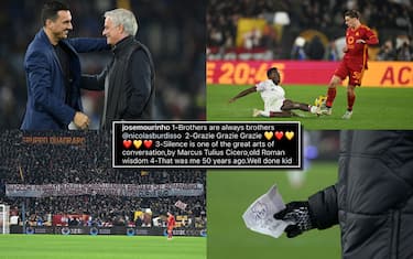 Dopo il silenzio post Roma-Fiorentina lo Special One è tornato a parlare sui propri canali social con quattro scatti dall'Olimpico e quattro messaggi ad accompagnare le foto: dall'amicizia con Burdisso ai tifosi giallorossi, dai complimenti al raccattapalle alla citazione di Cicerone per il fallo di Kayode su Zalewski