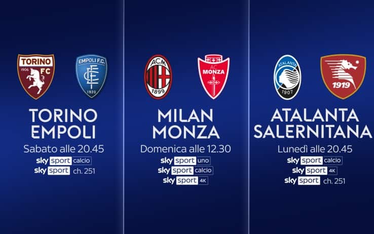 - Ore 20.45 : Atalanta-Salernitana su Sky Sport Calcio, Sky Sport 251, Sky Sport 4K e in streaming su NOW.